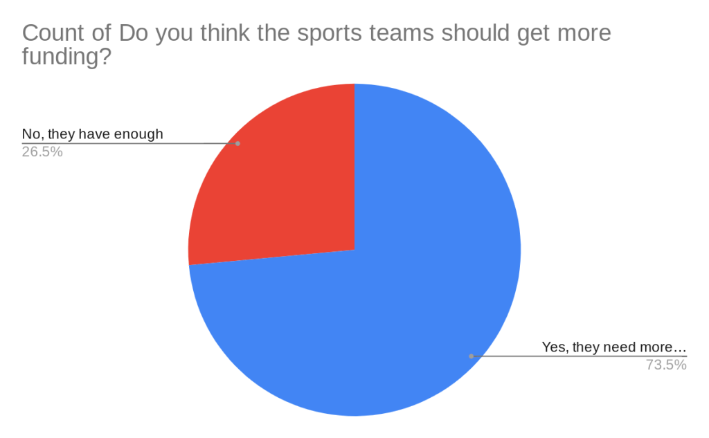 From this data overall we learned that most students at Lindblom believe the sport they play needs more funding. We also learned that most student athletes want more transportation so they don’t need to worry about getting to and from games. Most students want bigger stands as well so more people can support all kinds of sports. Overall Lindblom needs to do a better job at funding and supporting the student athletes and sports that they play because it could be that child’s future in life, and so that they can enjoy their high school sport and time in high school because you are only in high school once